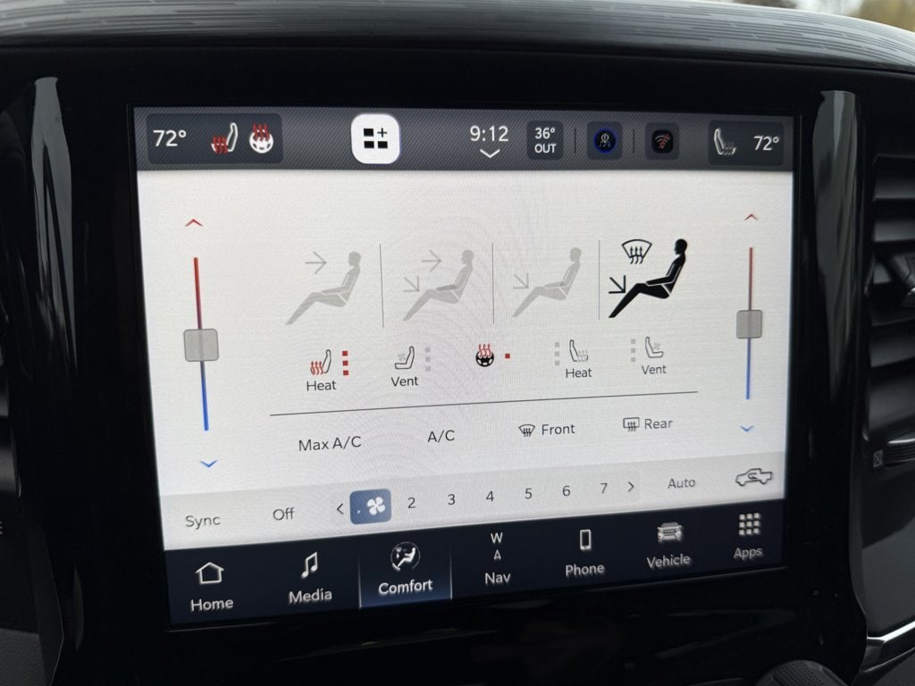 Cooled front seats Ventilated driver and front passenger seats